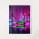 Voiture de sport fluorescente inspirée des années 1980, rayonnant des teintes vives de vert néon, rose chaud et bleu électrique. La voiture présente des lignes pointues et angulaires et un profil bas et aérodynamique, évoquant une esthétique rétro-futuriste. Il accélère une route lisse et humide reflétant son éclat vibrant. Autour de la scène se trouvent des palmiers, des panneaux lumineux et des gratte-ciel illuminés de néons, le tout sous un ciel nocturne dégradé passant du violet profond à l'orange. Toute l'atmosphère reflète l'audacieuse atmosphère synthwave des années 80, mêlant nostalgie et énergie futuriste.