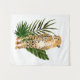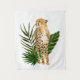 Cheetah Outlook I par Annie Warren. Un guépard à l'aquarelle s'allume avec des feuilles verts tropicaux dans le arrière - plan. | 164730Z