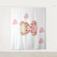 Tenture Teddy Bear Coeurs rose Tapestry fond