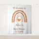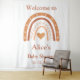Ceci est un joli arc-en-ciel bohème personnalisé en terracotta, orange, pêche et marron avec un grand à l'intérieur. Il comporte un nom personnalisé que vous pouvez modifier facilement en cliquant sur le bouton Personnaliser. C'est une belle tapisserie de bienvenue pour les fêtes de baby shower