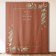 Featuring delicate watercolor greenery leaves and a gold frame on a terracotta background, this chic botanical wedding photo booth backdrop can be personalized with your names and special date. Designed by Thisisnotme©