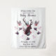 Tête de cerf rustique Fuschia Fleurs Bébé Fille personnalisé avec votre texte personnalisé. Un design chic campagne avec un animal de la forêt, des bois de cerf et des fleurs. En fuschia, bordeaux, pourpre et corail. Parfait pour un Baby Shower - Tapisserie murale de bienvenue !