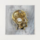 Tête conceptuelle, mécanique, humaine avec manomètre antique et engrenages métalliques contre arrière - plan industriel gris. Style Steampunk.