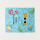 L'invitation est conçue avec une palette de couleurs lumineuses et estivales de bleus, de verts et de roses pour donner le ton à une fête sensationnelle.
