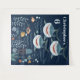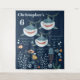 Si vous organisez une fête d'anniversaire sur le thème "sous la mer", nautique, océanique ou requin, cette magnifique illustration représentant trois grands requins blancs de dessin animé souriants nageant au-dessus d'un fond marin rempli de poissons marins, de méduses, de bulles, de coquillages et de rides d'eau est idéale. Il y a des modèles bleu clair pour le nom du garçon ou de la fille qui fête son anniversaire et un pour leur âge également. La couleur de fond bleu foncé peut être modifiée selon vos préférences.