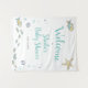 Cette tapisserie de bienvenue pour baby shower présente un thème sous l'océan adorable avec du texte turquoise et noir. C'est fabuleux pour une baby shower sur le thème marin !