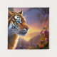 Magnifique Blue Eyed Tiger Paysage montagneux et fleurs roses AI produit art AI Art créé par minx267