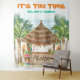 Le fond photographique sur le thème du luau tropical présente un bar Tiki sur la plage peint à l'aquarelle (complet avec un perroquet et des cocktails) encadré par des palmiers, des torches Tiki et des totems avec les légendes "Aloha" et "C'est l'heure Tiki" dans des polices de caractères de style insulaire. Le texte peut être personnalisé (par exemple, il est présenté ici avec deux noms comme pour une fête de couple, mais vous pouvez personnaliser le texte et le changer en "Joyeux Anniversaire Marley", ou ce qui convient à votre célébration). Parfait pour un mariage, une fête prénatale, un anniversaire, un anniversaire de mariage, etc. Œuvre de KL Stock.