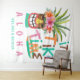 La tapisserie à thème Tropical Tiki présente un totem Tiki peint à la main, ananas, planche de surf et perroquet avec la typographie "It's Tiki Time". Le salut et les noms "aloha" (ou tout texte qui vous plaît peut s'insérer dans cet espace !) peuvent être personnalisés. Idéal pour une réception de mariage, douche à couple, luau, anniversaire, anniversaire et toute fête à thème île. Art par KL Stock