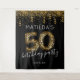 Toile de fond de photomaton pour une fête d'anniversaire amusante de 50 ans avec un fond noir tendance, des paillettes dorées et des confettis, 50 ballons en hélium avec impression léopard, le nom de la fille/garçon d'anniversaire et la date.