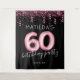 Toile de fond de photomaton pour fête girly de 60e anniversaire avec un fond noir tendance, paillettes roses et confettis, 60 ballons hellium roses, le nom de la fille qui fête son anniversaire et la date.