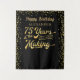 Célébrez et décorez pour un 75e anniversaire et/ou utilisez comme toile de fond pour une séance photo avec ce fond ou bannière personnalisable noir et or à motif confettis avec une typographie rétro pour "75 ANS EN COURS DE FABRICATION" qui intègre leur année de naissance dans le design et personnalisé avec "JOYEUX ANNIVERSAIRE nom". MODIFICATIONS : Vous pouvez changer la couleur de fond ou choisir un fond graphique stylisé en cliquant sur l'onglet PERSONNALISER DAVANTAGE en bas de la section PERSONNALISER. Contactez le concepteur via Zazzle Chat ou makeitaboutyoustore@gmail.com si vous souhaitez que ce design soit modifié, sur un autre produit ou si vous souhaitez des articles coordonnés.