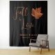 Toile de fond de photomaton de thème de mariage rustique de feuille d'érable automne Tombez amoureux. Élégant et simple cuivre, marron, avec décoration de réception de fond noir. Magnifique conception sur le thème de la campagne. Image copyright Marg Seregelyi Photography.