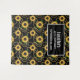 Tapisserie d'anniversaire avec un motif élégant et stylé. Jolies tournesols jaunes et feuilles vertes entourées de délicates chaînes dorées. Fond noir.
