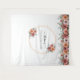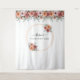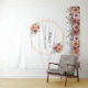 Tapisserie de fond photographique à motif floral élégant avec espace pour votre/vos nom(s) et votre événement. Idéal pour les mariages, les fêtes de mariage et de naissance, les brunchs, les anniversaires et les anniversaires de mariage. Magnifique bordure peinte à la main à l'aquarelle en haut avec des fleurs et du feuillage dans un mélange de tons rose blush, rose poussiéreux, pêche, ivoire, bleu poussiéreux nuageux ardoise, gris et vert sauge. Détails en écriture manuscrite. Nom(s) et texte de l'événement entourés de cercles dorés avec des bouquets de fleurs. Cartes d'invitation et divers produits événementiels coordonnés disponibles. Fait partie de notre collection "Éthérée" de mariage et d'événements.