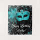 Turquoise bleu Masquerade anniversaire arrière-plan avec beau masque turquoise mascarade sur un joli arrière - plan de livre. Cette belle bannière de fête mascarade est facilement customisée avec le texte de votre choix. Vous pouvez modifier la couleur de l'arrière - plan et du texte.