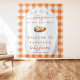Un petit gâteau à la coupe Baby shower d'automne en arrière-plan Affiche de bienvenue - Photo Prop Décorations de Baby shower - Décor de stand de photo - Floral Thème d'automne, épice Citrouille, aquarelle rustique Design À la recherche du baby shower d'automne parfait signe d'accueil en arrière-plan? Notre baby shower floral "A Little Cutie Pie" est conçu pour apporter à votre fête toutes les douces ambiance d'automne. Idéal pour un baby shower d'octobre ou un baby shower Thanksgiving en septembre, ce panneau d'accueil allie charme rustique et élégance saisonnière. Ce panneau d'accueil baby shower d'inspiration automnale : Illustrations d'aquarelle d'un latte d'épice citrouille et d'une tranche de tarte citrouille arrière - plan doux orange et une disposition voûtée tendance police de calligraphie script élégant pour une atmosphère rustique moderne Une palette chaleureuse et confortable d'orange, de marron et de crème - couleurs d'automne classiques Parfait pour les baby showers d'automne non-Halloween, ce panneau d'entrée est grande fille Thèmes de baby shower baby shower, de baby shower de garçon ou de genre neutre. Que vous planifiez un baby shower rustique, un baby shower d'automne de saumons ou un événement de style ferme, ce baby shower d'accueil modèle accueille chaleureusement vos invités avec son style saisonnier et son design réfléchi.
