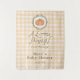 Célébrez l'arrivée de votre petite citrouille avec cette tapisserie de baby shower sur le thème de l'automne, mignonne et charmante, dotée d'un design dessiné à la main représentant une petite citrouille aquarelle adorable, entourée d'un cadre dessiné à la main et d'un motif gingham orange doux en arrière-plan. Cette tapisserie capture parfaitement la chaleur et le confort de la saison automnale. Les couleurs chaudes et la police ludique donneront certainement le ton à une célébration mémorable et festive.