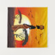 Belle Femme Africaine Silhouette habillée de Cire traditionnelle tissu, portant un pot décoré à la main, Marcher dans la nature Extraordinaire de la Savane Africaine, sur un coucher de soleil chaud et paisible. Illustration vectorielle originale Copyright BluedarkArt TheChameleonArt.