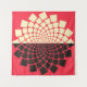 Fleur stylisée émergée de l'eau, ou soleil levant à l'horizon, dans une palette de couleurs noir, rouge et ivoire.