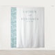 Ce fond de mariage élégant présente un design minimaliste avec une esthétique moderne et épurée. Le côté gauche présente un motif de vague abstrait dans des tons bleu-vert doux, tandis que le côté droit reste blanc pour un aspect équilibré. La typographie est centrale, utilisant une police serif classique pour les noms et un script cursif pour "et", créant une atmosphère sophistiquée et romantique. Parfait pour les mariages ou les annonces de fiançailles, ce design dégage une sensation de tranquillité et d'anticipation avec sa palette de couleurs sereine et sa composition simple.