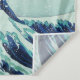 Il s'agit d'un dessin de vagues marines extrêmes bleues, cyanes et aquamarines avec mousse et spray, basé sur l'oeuvre de Katsushiki Hokusai (1760-1849).