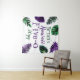 Célébrez un 50e anniversaire spécial avec une guirlande de fête Hawaii 5-0. De belles feuilles tropicales vertes et violettes de prune entourent votre texte personnalisé de cinquantième anniversaire. Les feuilles de Monstera, les fougères et autres feuilles d'île avec du texte doré sont parfaites pour les tapisseries et les bannières de 50e anniversaire.