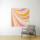 Vibes rétro colorées illustration abstraite avec rayons ondulés rose, violet, marron, beige, jaune et orange sur arrière - plan pastel