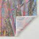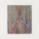 L'oeuvre est une peinture abstraite vibrante et complexe qui présente une composition symétrique avec une variété de motifs géométriques et des couleurs vives. La partie centrale de la peinture est dominée par des stries verticales de rouge, vert et bleu, qui créent un sens de profondeur et de mouvement. Autour de ces stries centrales se trouvent de nombreuses formes triangulaires et rectangulaires remplies de motifs complexes en forme de treillis dans des couleurs comme le jaune, le blanc, le bleu et l'orange. Ces formes sont disposées de manière à créer un sens de symétrie et d'équilibre, attirant l'oeil du spectateur vers le centre de la pièce. Le tableau comprend également plusieurs éléments qui ressemblent à des structures ou des cadres architecturaux, avec des lignes croisées et des motifs de grille qui ajoutent à la complexité du design. Près du bas de l'oeuvre, il y a des formes circulaires avec des motifs qui ressemblent à des yeux et un symbole yin-yang, ajoutant un élément de mysticisme ou de symbolisme à l'oeuvre.Globalement, l'oeuvre est intéressante en raison de sa composition détaillée et stratifiée, l'utilisation de couleurs vibrantes, et l'incorporation d'éléments géométriques et symboliques qui invitation le spectateur à explorer et interpréter l'oeuvre de différentes manières.