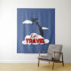 Illustration de style rétro "Voyageons" avec décoration d'avion sur le ciel nuageux