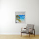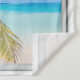 Plage et mer tropicale bleue, fausse scène de fenêtre, pour une salle de bain sans fenêtre ou mur de bureau. Illusion d'optique réaliste et amusante Tapisserie pittoresque pour un bureau ou un mur d'étude.