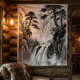 This stunning black and white waterfall tapestry features dramatic cascading waters flowing through misty mountain peaks, framed by ancient pine trees in flowing ink wash painting style. The atmospheric composition captures the raw power and serene beauty of wilderness with detailed rock formations, dynamic water movement, and ethereal fog layers that create depth and tranquility. Perfect for nature lovers, meditation spaces, cabin decor, rustic home aesthetic, dark academia style, or as a meaningful gift for hikers and outdoor enthusiasts. This premium quality tapestry (50" x 60") brings the peaceful energy of mountain waterfalls into any space, creating a contemplative and inspirational ambiance ideal for bedrooms, living rooms, offices, or yoga studios.