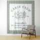 Décoration personnalisée de fête de bachelorette de camping sur mesure avec fond vert, décoration de voyage de fille de montagne, tapisserie de fête de bachelorette rétro luxe personnalisée en vert forêt avec pince et forêt de montagnes idéale comme toile de fond pour photo de fête de bachelorette.