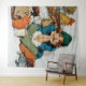This playful artwork features a dreamy young elf sitting among piles of colorful gift bags and holiday parcels. With rosy cheeks, pointed ears, and a thoughtful pose, the character brings charm and festive whimsy to the scene. The painterly style adds warmth and magic, making it perfect for holiday décor, greeting cards, and imaginative seasonal designs.