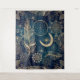 Modèle de fleur de mandala, magique et branché, avec une collection de plumes tribales, de fleurs de mandala, de fleurs géométriques, la lune, le soleil et les étoiles, cercles, points, carrés, triangles, zigzag de chevron, formes géométriques, un mandala avec un oeil de protection, fait de points d'or jaune et d'argent brillant parties scintillant scintille image mystique, sur une minuit arrière - plan étoilé bleu foncé dégradé. Cette illustration tendance, mystique, tribale, à la mode, imaginaire, design bohème, est parfaite pour l'usure quotidienne, la décoration de maison, les célébrations et les décorations thématiques de jours spéciaux.