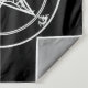 A large Satanic altar tapestry printed on silky polyester. This banner measures 2ft by 3ft. The image of the Satanic goat is at the center - the scapegoat and the symbol of Baphomet. Encircling the pentagram is the name of Satan in reverse, spelled from left to right.