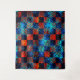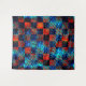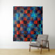 Tenture Xadrez azul, laranja, faux sujo com manchas.