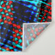 Xadrez com riscos cruzados, de cor azul escuro e riscos em azul claro e laranja com tons avermelhados de bordas escuras nos traços que podem causar a percepção de sujo ou de ter manchas.