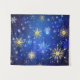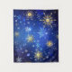 Blue Christmas background with gold and white jewelry snowflakes. Golden snowflakes. XMAS.
