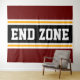 Cette conception sportive et sportive présente du texte en gras END ZONE à l'intérieur d'une large bande noire surlignée avec deux bandes de course blanches et jaunes contre des bandes extérieures rouges profondes. Le texte de cette conception peut être personnalisé.