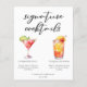 Cette feuille de menu de cocktails sophistiquée vous propose une simple typographie noire au-dessus de 2 de vos boissons préférées et de leurs ingrédients pour votre bar mariage côtier. Un dessin cosmopolite chic et Tequila Sunrise ajoutent une touche amusante à votre menu du bar. Complétez avec les noms du couple et la date de leur réception.