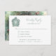 Elégante et unique carte RSVP où la sophistication classique et le charme moderne. Cette carte RSVP présente un monogramme joliment orné dans les tons verts luxuriants, centré sur un arrière - plan vert pâle qui met en évidence les initiales du couple. Le design exhale une élégance intemporelle, complétée par une formulation élégante dans un mélange de typographie classique et de calligraphie manuscrite délicate. L'arrière présente une délicate scène de paysage aquarelle dans les tons terre, vert et roux, avec une porte ornée charmante, et la possibilité d'ajouter - ou pas - vos initiales monogrammes sur le cadre de la porte, ainsi qu'une ligne de texte en dessous ou de le retirer. Une partie de la collection complète "A Timeless Elegance Green". Des enveloppes de coordination sont également disponibles. Également disponible dans deux autres magnifiques décors aquarelle, offrant la possibilité de choisir celui qui complète le mieux votre thème mariage. Si vous préférez avoir cette carte RSVP sans options de repas, effacez simplement tous les caractères de la zone de texte avec les instructions de choix de repas et utilisez la zone de texte modèle dernier pour ajouter tout message que vous voulez (c.-à-d., "J'espère que vous pouvez le faire, je suis impatient de vous y voir") ou votre nom et événement.