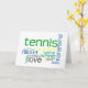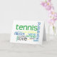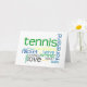 Le tennis, c'est l'amour, les amis, les ennemis, les raquettes, les balles, le court, le filet et les coups. Partagez votre amour du tennis avec ce jeu de mots clés de bienvenue / carte de billet créé par Tennisessities.