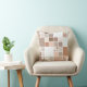Un coussin moderne et design avec un motif en mosaïque dans des tons chauds de terre cuite, tan, café et chocolat pastel.
