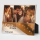 Plaque photo avec un design boho rétro en terre cuite avec 3 de vos photos personnalisées. Le texte LOVE est un ajout stylisé le design. Un beau souvenir pour un fiançailles, un mariage ou un anniversaire.