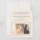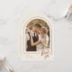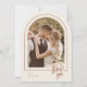Un élégant et moderne carte de remerciements mariage neutre en forme d'arc de cercle qui présente un texte "merci" de style manuscrit tendance et des bordures élégantes autour de vos photos. Montré sur un arrière - plan beige neutre avec texte en terre cuite et éléments design. Personnalisez le modèle avec vos initiales, votre date de mariage, votre message et vos photos. Tout le texte, les éléments et les couleurs arrière - plans sont modifiables afin que vous puissiez créer une carte personnalisée qui correspond parfaitement à votre photo. © Kimbellished, LLC
