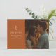 Terracotta Boho Monogramme Enregistrer la date Ce design présente votre photo préférée et monogramme du couple.