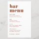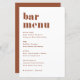 Ajoutez ce papier à lettres de carte à barres personnalisable à votre paysage de table d'évènement. Ils présentent une typographie rétro audacieuse et une typographie en terre cuite simple. Cette carte de menu du bar en terre cuite est parfaite pour les mariages, les douches nuptiales, les baby showers et bien plus encore.