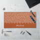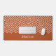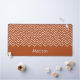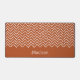 Destei's white squiggly chevron zigzag pattern on a rust red terracotta brown background color. There is also a personalizable text area for a name or other custom text. Feel free to change the colors to your liking.