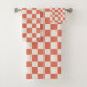 Le set de serviettes à damiers en terre cuite et crème comprend un linge de toilette, une serviette de toilette et une serviette de bain. Achetez le set complet ou n'importe quel morceau. Pour voir le Motif de conception de Terracotta et Crème À damiers sur d'autres articles, cliquez sur la collection "Rocklawn Arts".